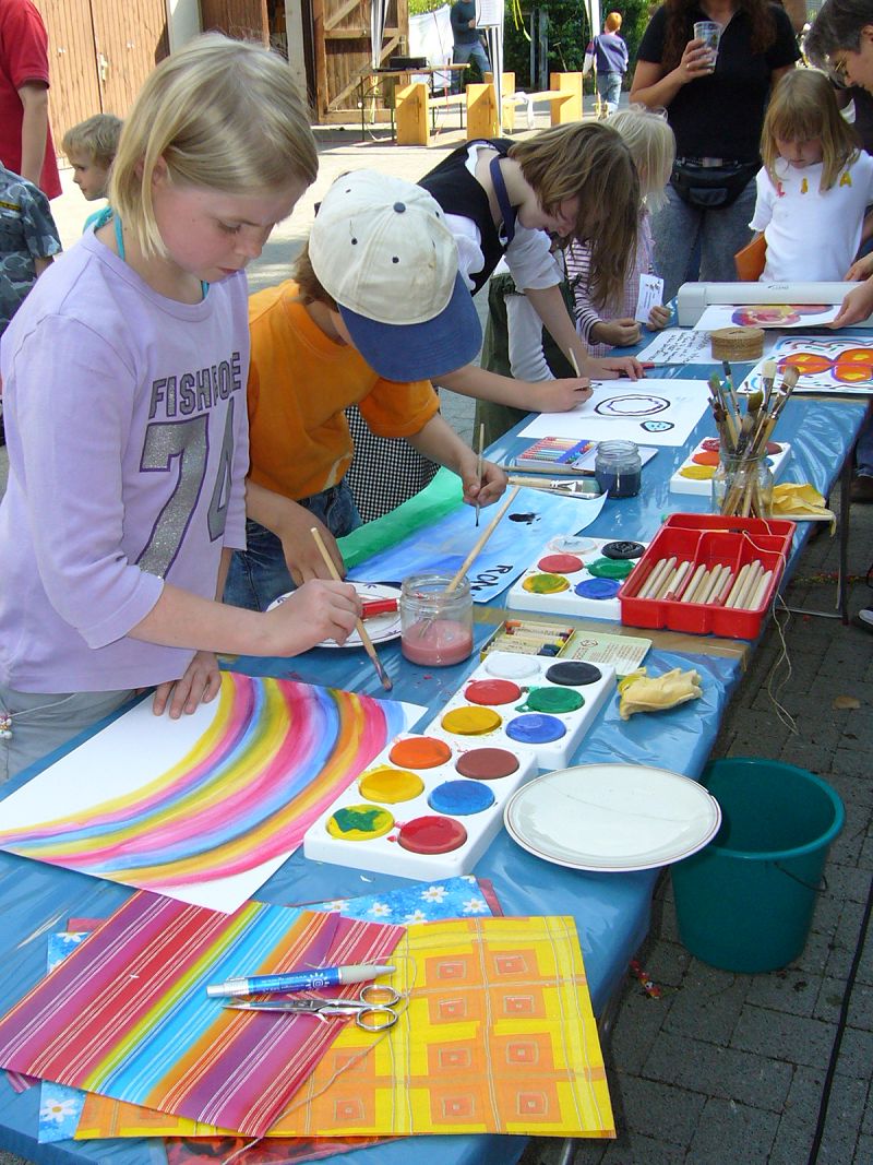 Malaktion für Kinder auf dem Straßenfest. Zoom | Flohmarkt beim Gemeindefest. |