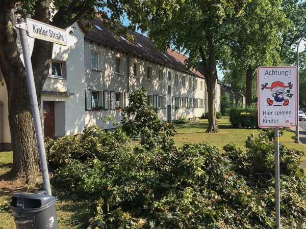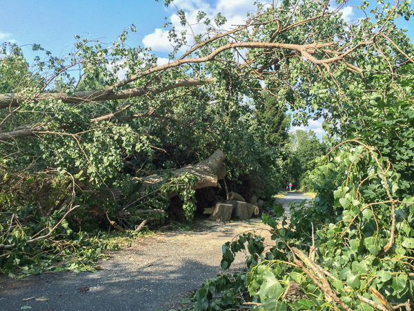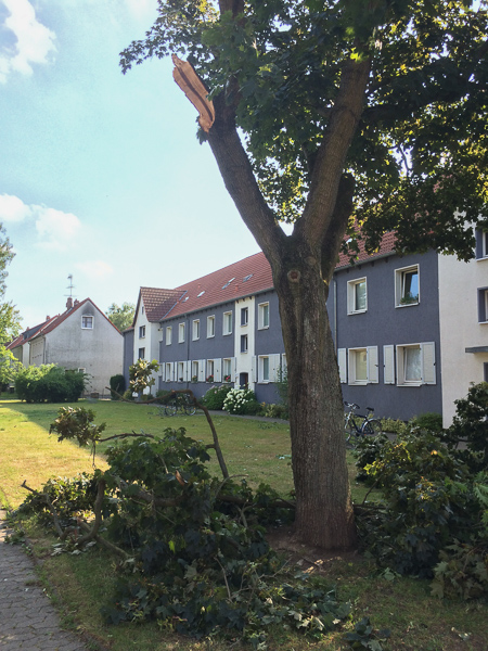 Montag, 6. Juli 2015: Am Sonntagabend zieht ein heftiges Gewitter mit orkanartigen Böen über Braunschweig. Auch im Norden brechen Äste ab und ganze Bäume fallen um. Zum Glück wurden offensichtlich keine Menschen verletzt und es entstanden kein größeren Schäden an Gebäuden. Die Fotoserie zeigt das Ausmaß in der Schuntersiedlung und rundherum. Zur Fotoserie das Bild anklicken.