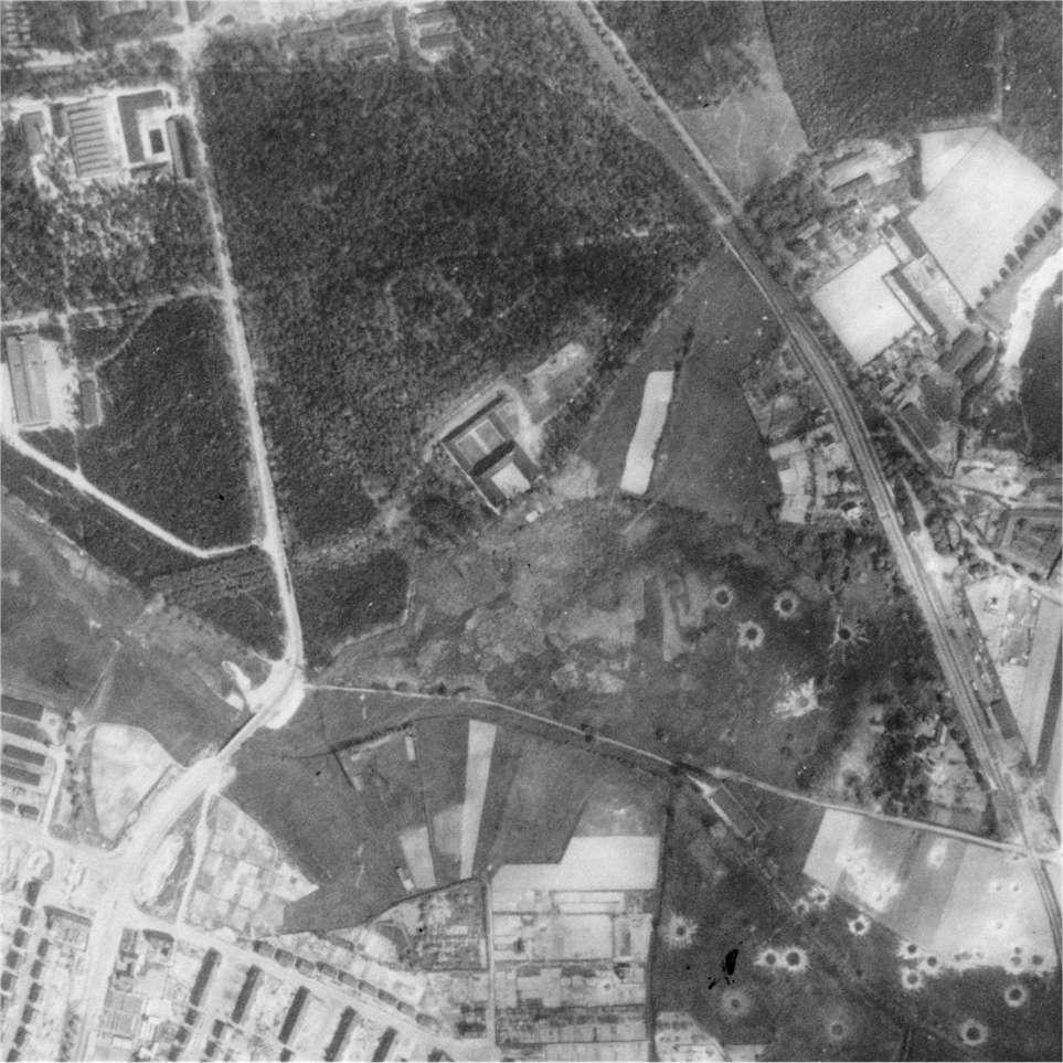 Die Gebietsführerschule 1944 aus der Luft. Unten die Schunter, links der Bienroder Weg und rechts oben die Eisenbahnlinie. Zoom |